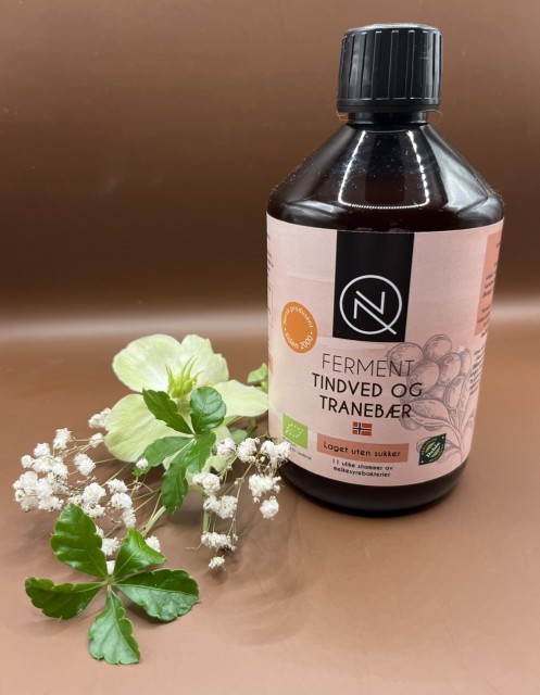 FERMENT med tindved og tranebær er en fermentert drikk med innhold av økologisk tindved, tranebær og blåbærsaft.
